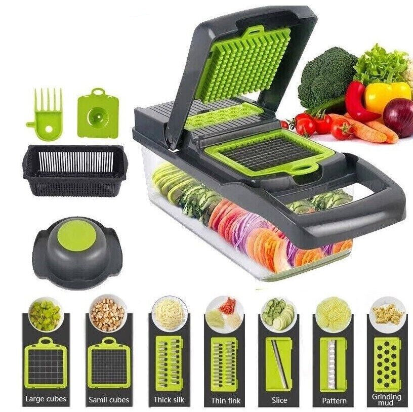 This vegetable cutter offers a 1.5 liter container to hold fruit or vegetables. The non-slip silicone on the underside offers a high level of stability on the work surface. We also provide cleaning claws and brushes, the peeler helps peel the skin better in vegetable slicers.